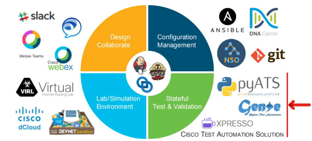 I recently had a “Meet the Engineer” discussion with JB (@jeaubin5 on Twitter) from the pyATS dev team and we talked about the different “domains” that make up a proper network automation ecosystem and ultimately how pyATS fits into it. I always refer back to this visual from a session I attended at Cisco Live 2019 in San Diego.